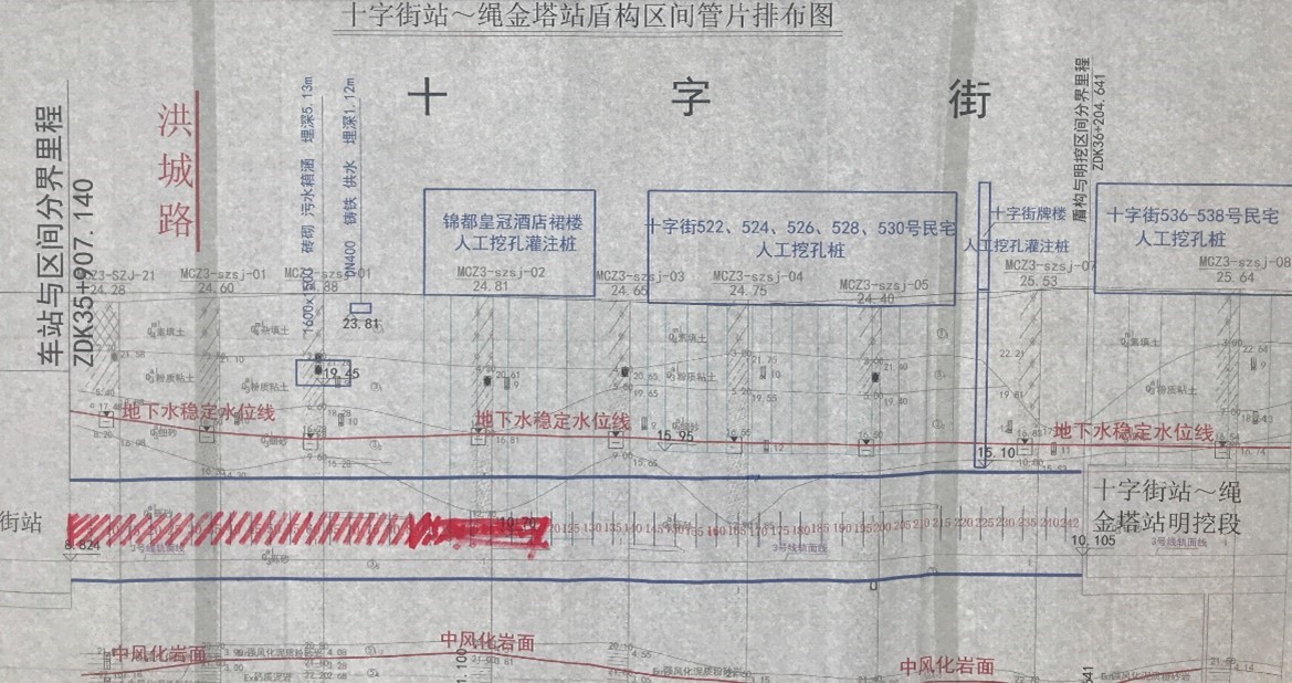 盾构机先后在富水砂层地质条件下安全下穿洪城路、皇冠酒店裙楼、豫章故道牌楼后顺利到达绳金塔站。