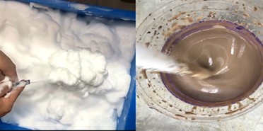 残土サンプルを採取し、各種の配合効果の中から適切な発泡体とベントナイトの割合を初期に作成し、残土の最適な流塑性を達成した。