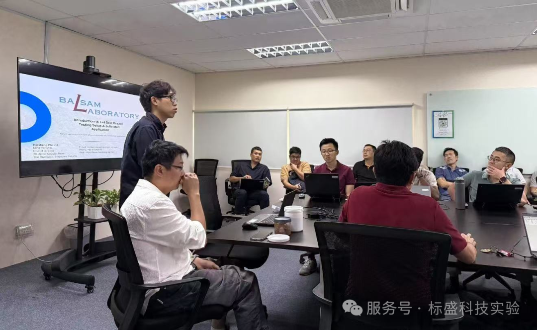 交流会上,标盛科技的技术总监朱亮先生向LTA隧道部总监Poh Chee keong先生及专家团全面展示了公司完整的盾尾油脂性能评价体系。该体系远非简单的性能测试,而是一个贯穿研发、生产、质检与施工指导的全流程质量保证系统。