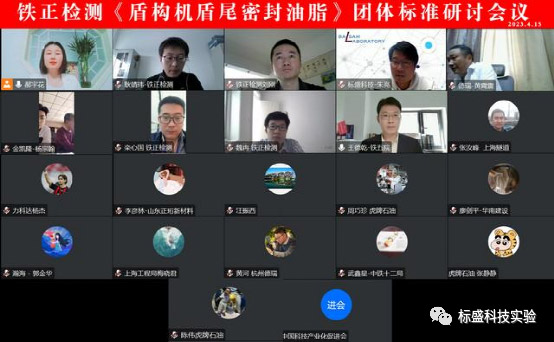 2023年4月15日,由中国合作贸易企业协会组织,中铁十四局集团铁正检测科技有限公司提出并牵头,联合中铁十四局集团隧道工程公司、中铁十四局集团大盾构工程有限公司等多家单位共同起草的《盾构机盾尾密封油脂》团体标准研讨会议通过线上视频会议的方式召开。